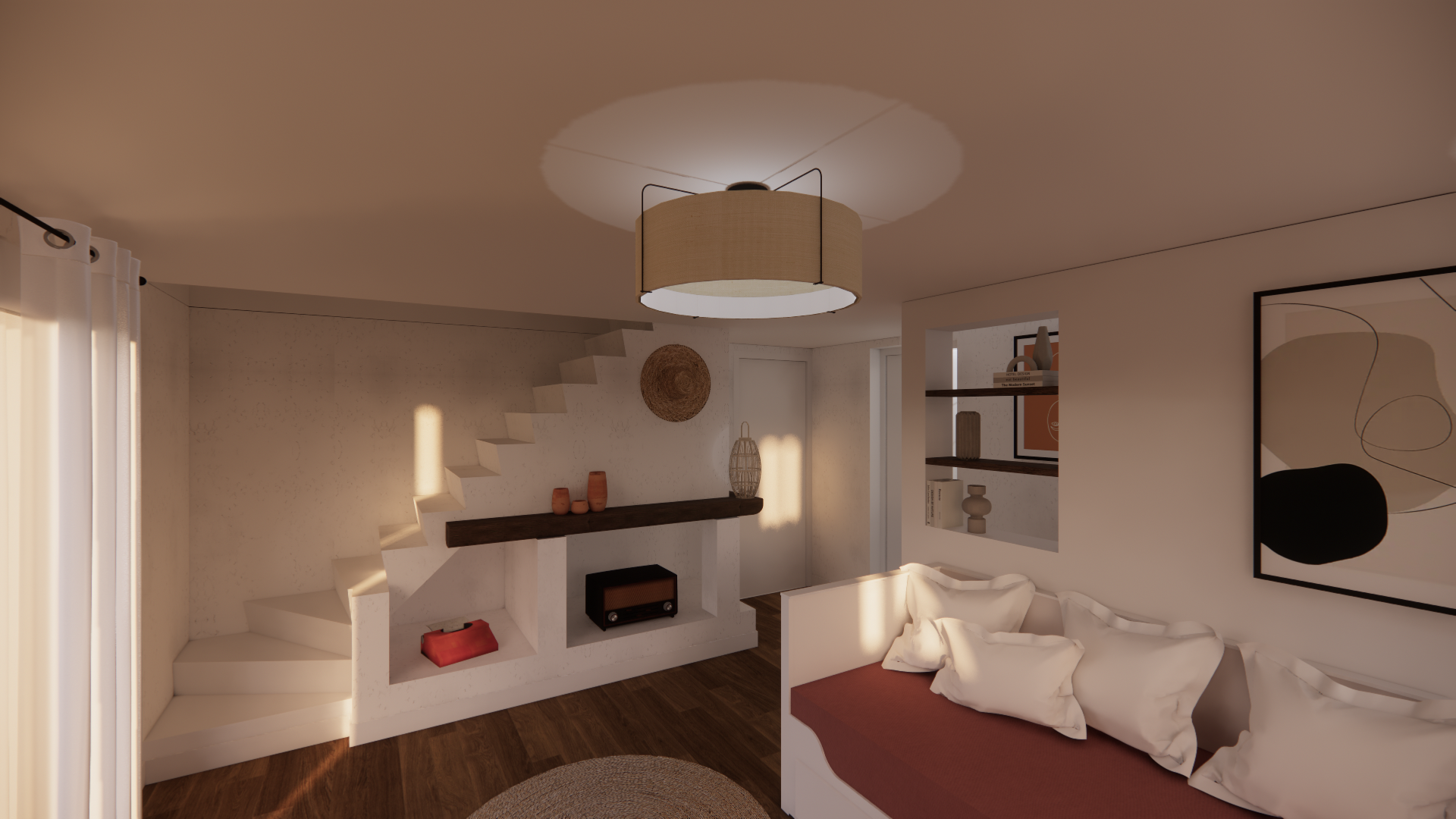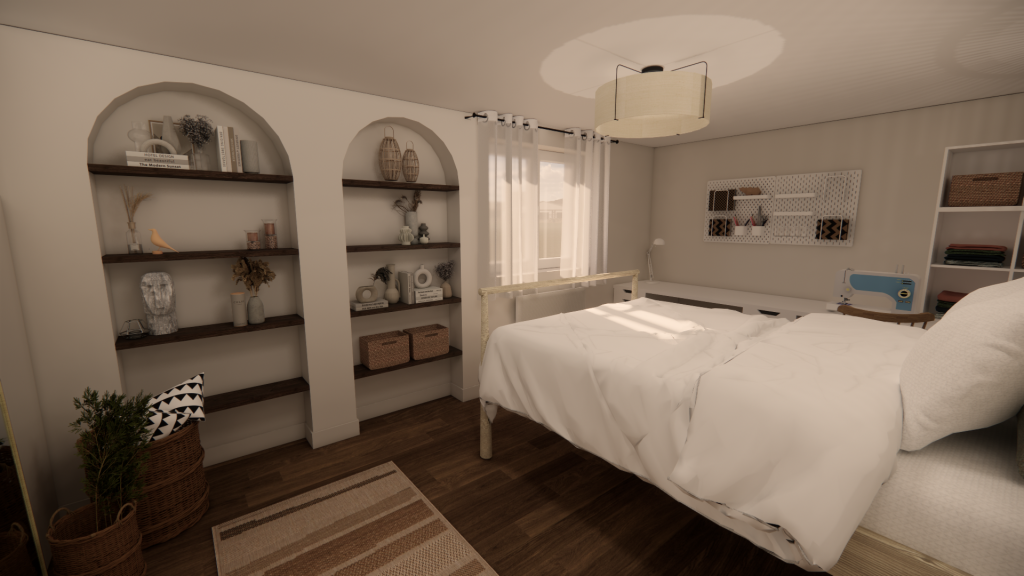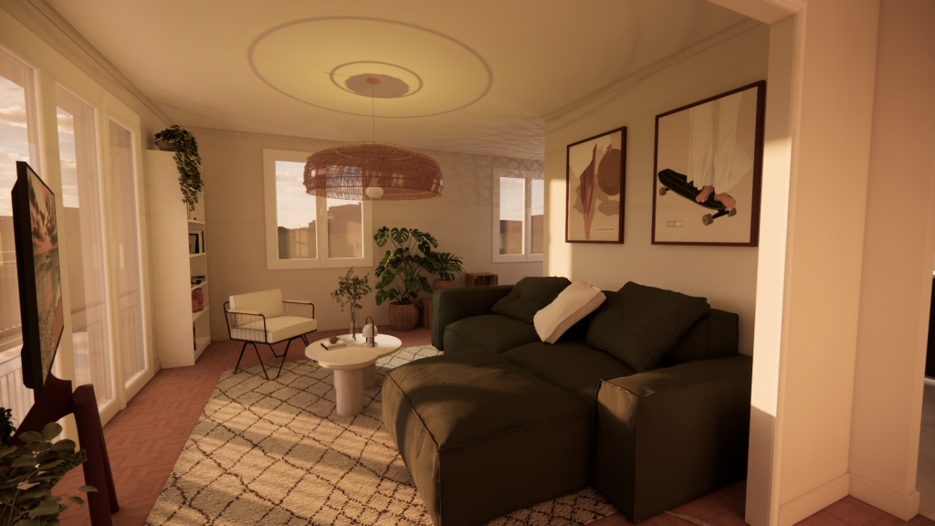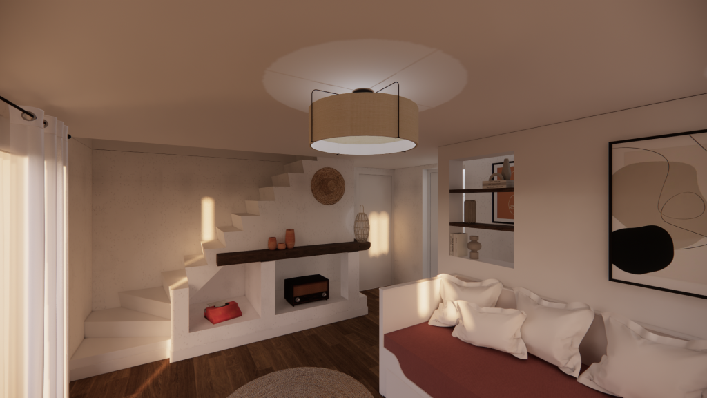 Enfin, les éléments d’époque — parquet, volets, lambris — sont soigneusement conservés pour ancrer le projet dans son histoire.