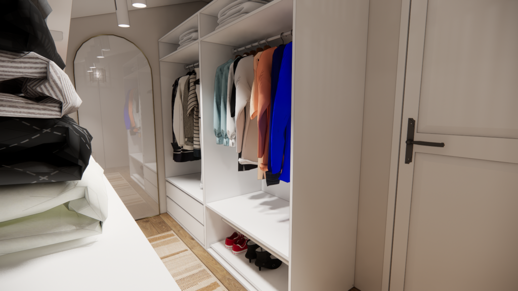 Dans ce projet de rénovation, l’objectif principal était d’optimiser l’aménagement d’une chambre existante en intégrant un dressing fermé, à la fois fonctionnel et discret. La cliente souhaitez avoir une vrai pièce fermé pour le dressing.
